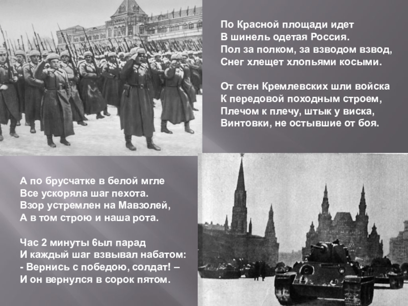 в Москве и приветствовал красноармейцев с трибуны мавзолея, вселяло в них уверенность и бодрость.