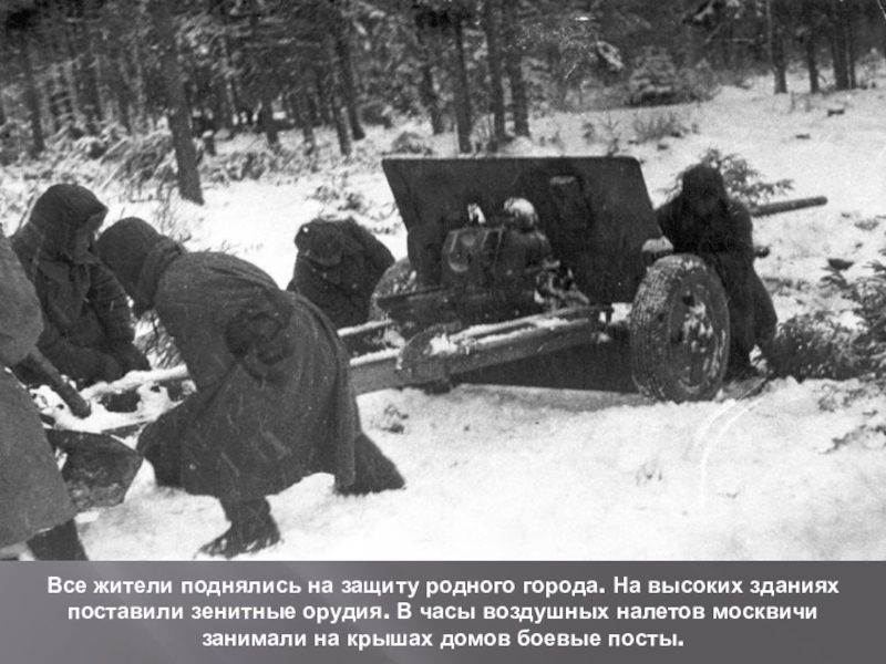 зенитные орудия. В часы воздушных налетов москвичи занимали на крышах домов боевые посты.
