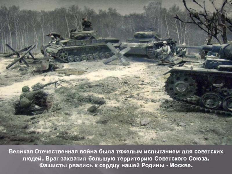 Слайд 6Великая Отечественная война была тяжелым испытанием для советских людей. Враг захватил