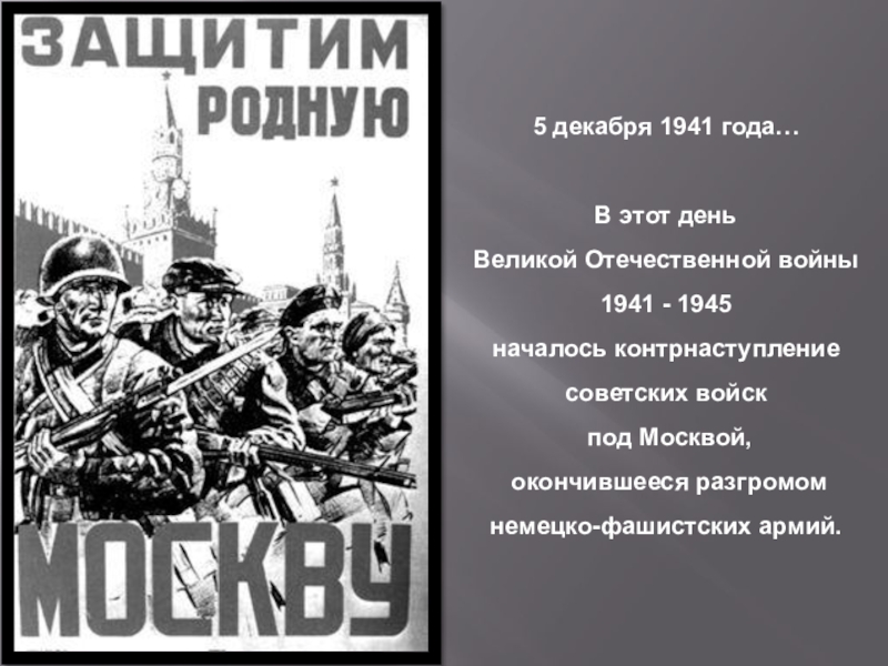 К фронту были подтянуты воинские подкрепления, готовилось наступление. Оно началось 5 декабря. Битва за Москву шла более двухсот суток.
