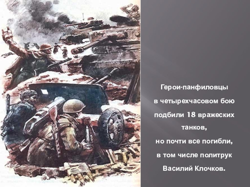 Слайд 2428 бойцов дивизии генерала И. В. Панфилова во главе с политруком
