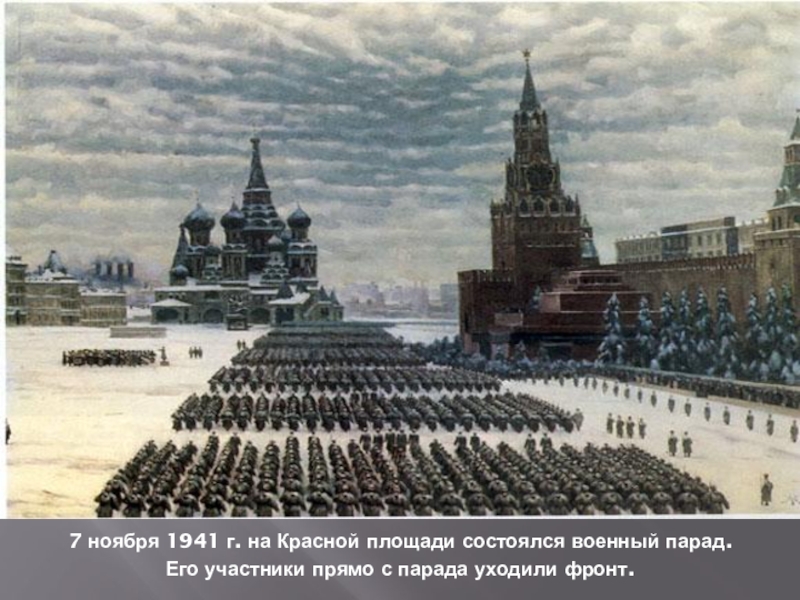 Слайд 157 ноября 1941 г. на Красной площади состоялся военный парад.