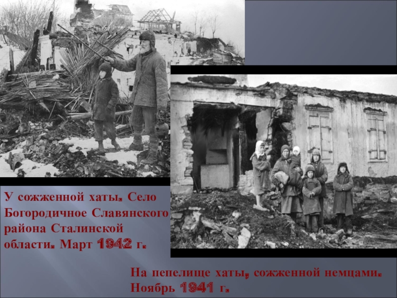 На пепелище хаты, сожженной немцами. Ноябрь 1941 г.