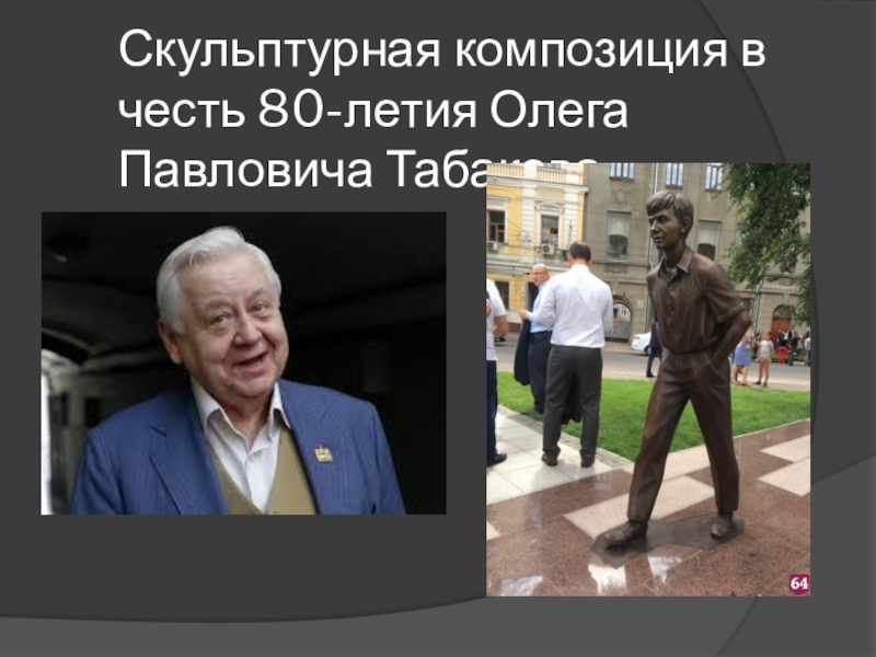 Слайд 28Скульптурная композиция в честь 80-летия Олега Павловича Табакова