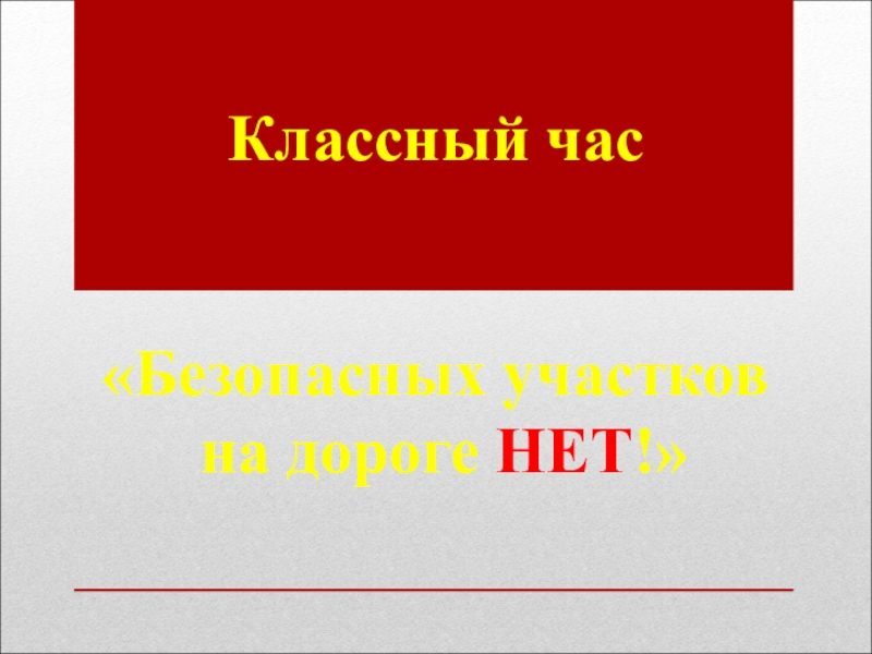 Презентация, доклад к классному часу Безопасных участков на дороге -нет!