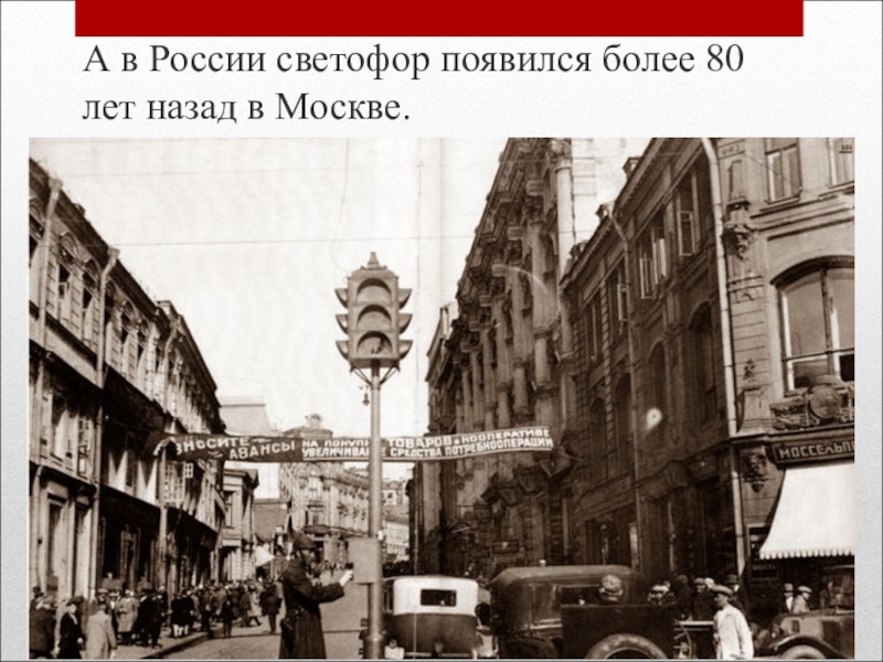 Слайд 5А в России светофор появился более 80 лет назад в Москве.
