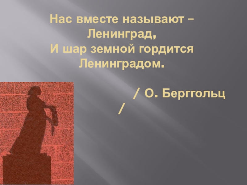 Нас вместе называют – Ленинград, И шар земной гордится Ленинградом. / О. Берггольц /