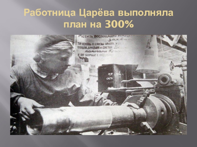 Слайд 16Работница Царёва выполняла план на 300%