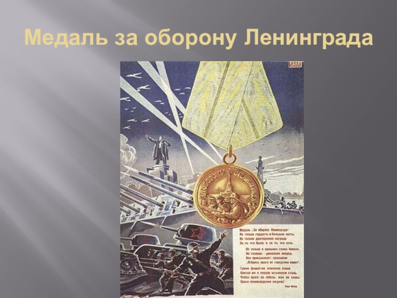 Слайд 21Медаль за оборону Ленинграда