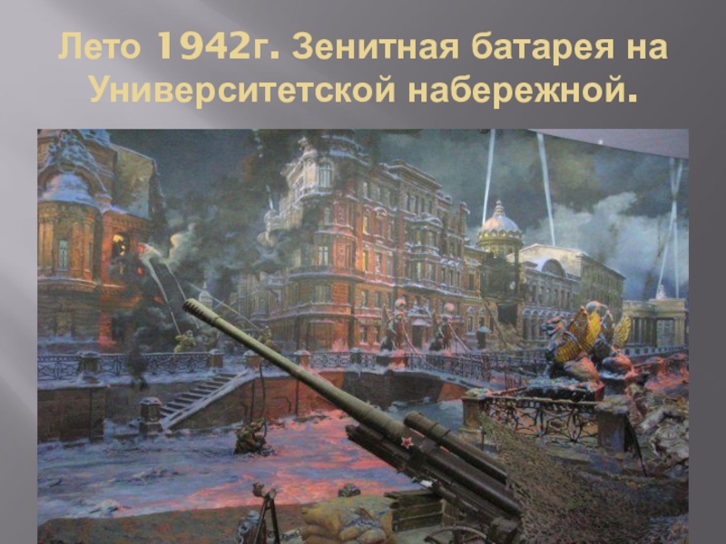 Слайд 4Лето 1942г. Зенитная батарея на Университетской набережной.