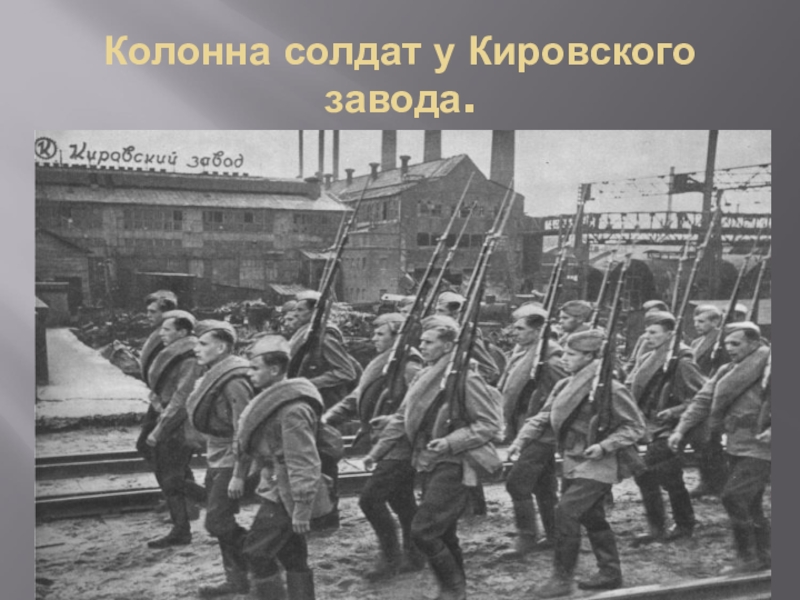 Слайд 6Колонна солдат у Кировского завода.