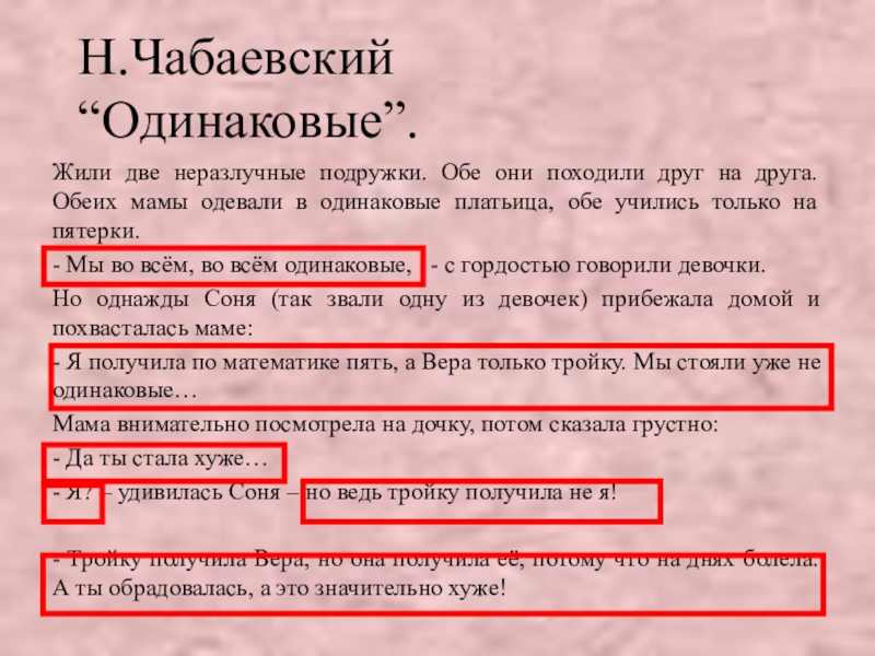 Слайд 7 Н.Чабаевский “Одинаковые”.