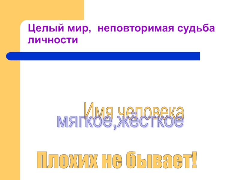 Целый мир, неповторимая судьба личности Имя человека Плохих не бывает! мягкое,жёсткое