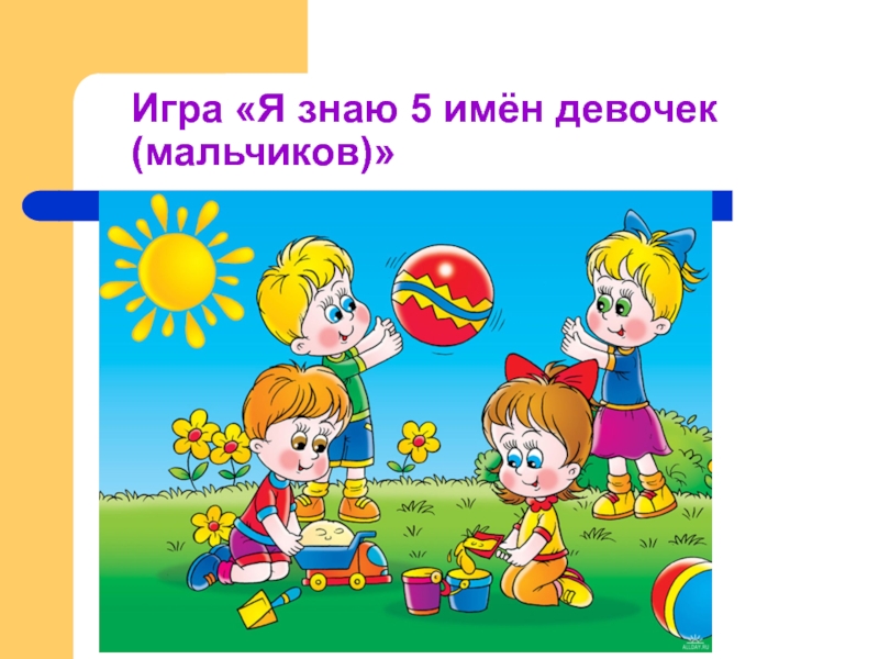 Слайд 20Игра «Я знаю 5 имён девочек(мальчиков)»