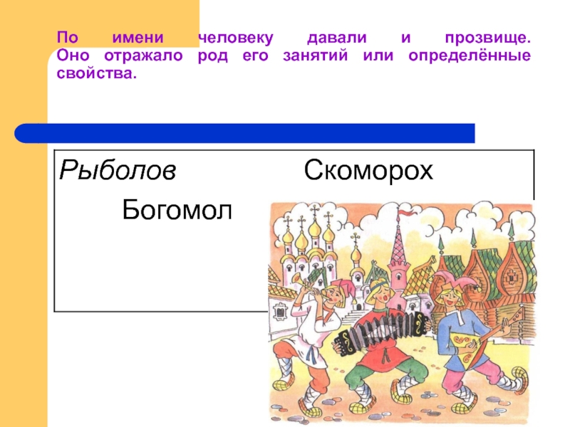 Слайд 6 По имени человеку давали и прозвище. Оно отражало род его занятий или