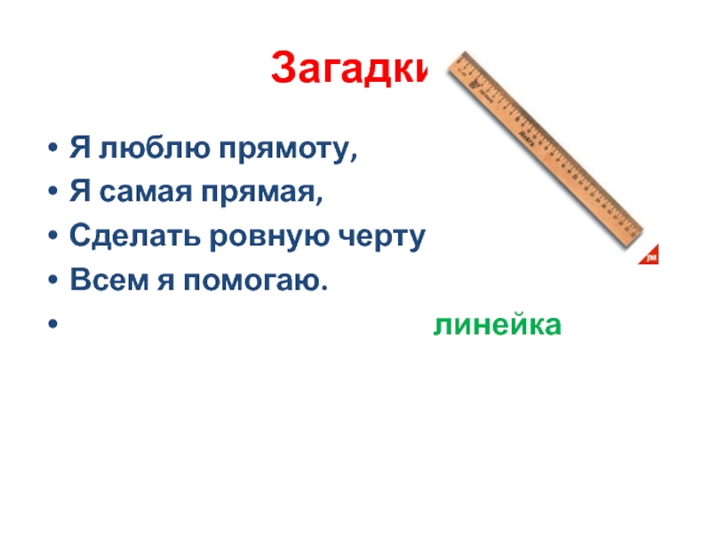 Загадки Я люблю прямоту,Я самая прямая,Сделать ровную чертуВсем я помогаю.