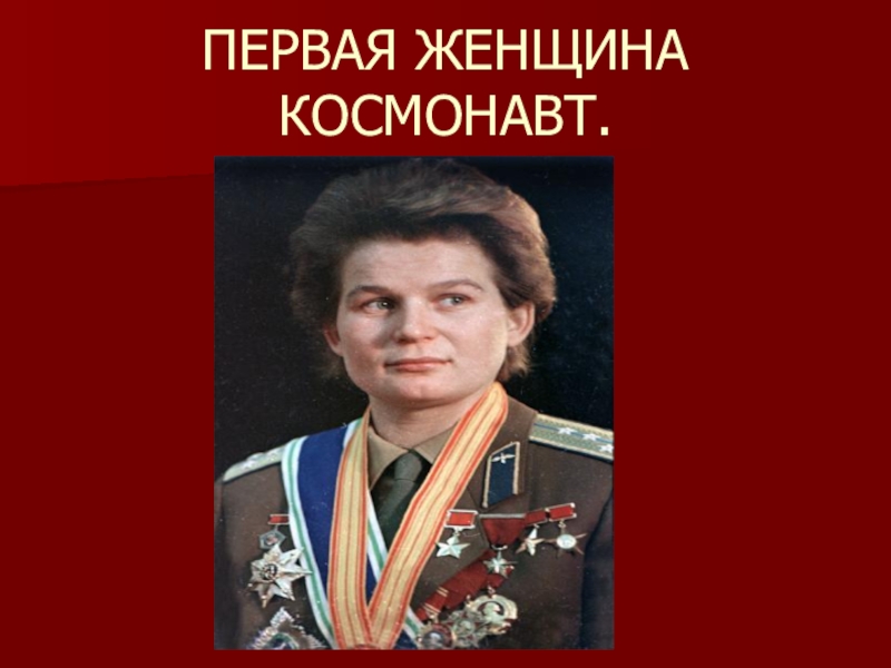 Слайд 6ПЕРВАЯ ЖЕНЩИНА КОСМОНАВТ.
