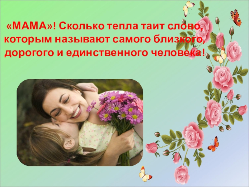 Слайд 6«МАМА»! Сколько тепла таит слово, которым называют самого близкого, дорогого и