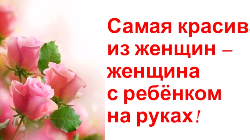 Слайд 9Самая красивая из женщин – женщина с ребёнком на руках!