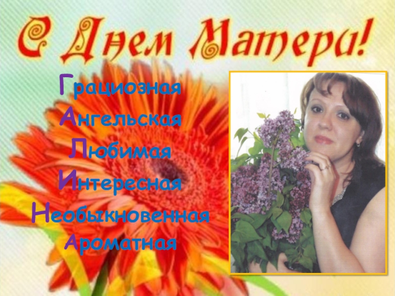 Слайд 4Грациозная Ангельская Любимая Интересная Необыкновенная Ароматная