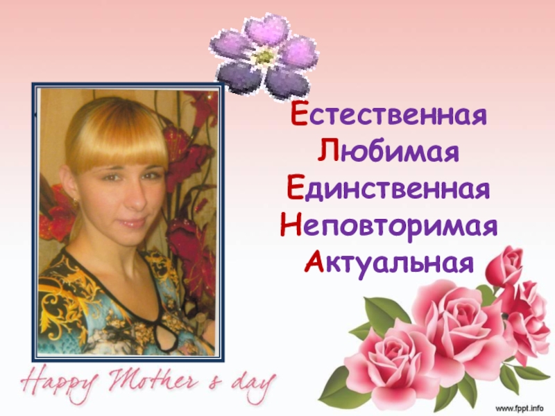 Слайд 3Единственная Любимая Естественная Нежная Аккуратная