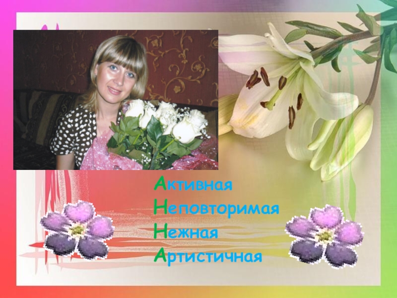 Слайд 6Активная Неповторимая Нежная Артистичная
