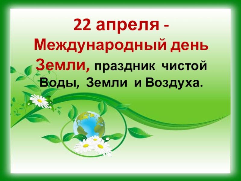 Слайд 1ДЕНЬ ЗЕМЛИ