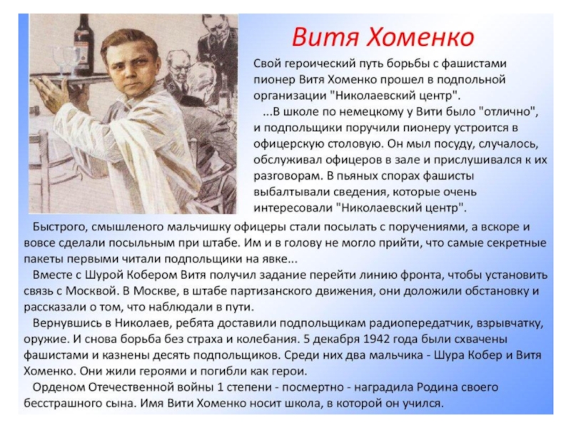 Презентация, доклад к классному часу Дети-герои ВОВ