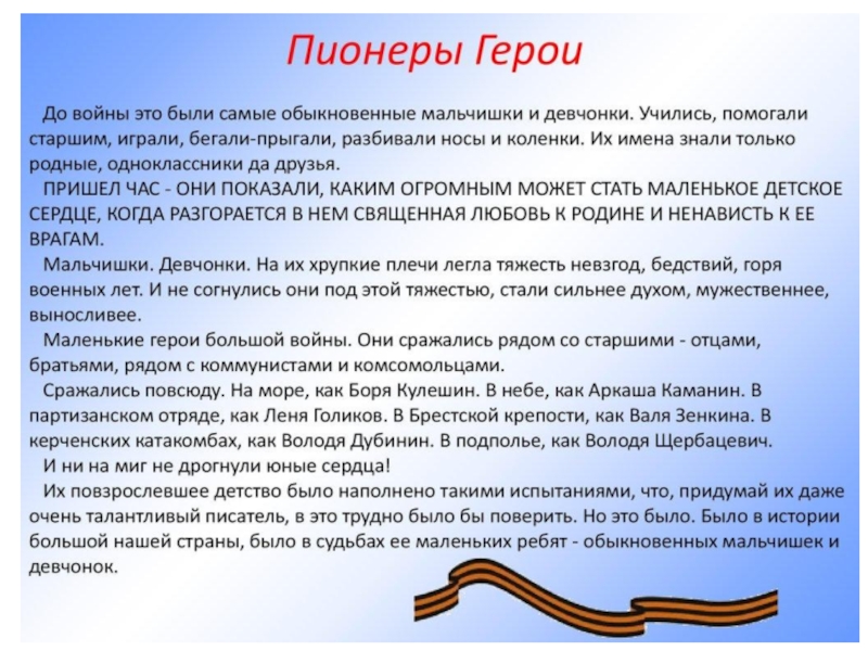 Презентация к классному часу Дети-герои ВОВ Детские презентации