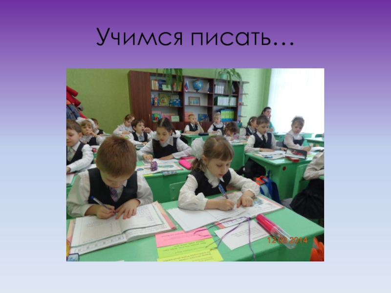 Слайд 8Учимся писать…