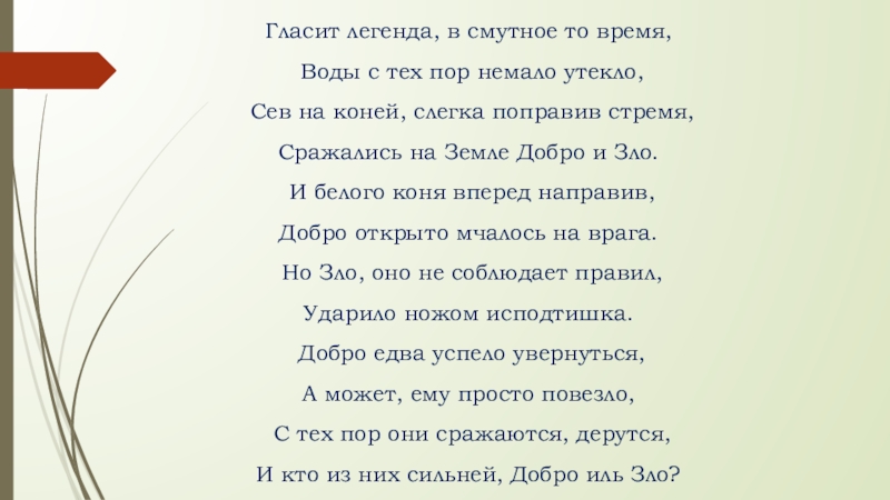И кто из них сильней, Добро иль Зло?