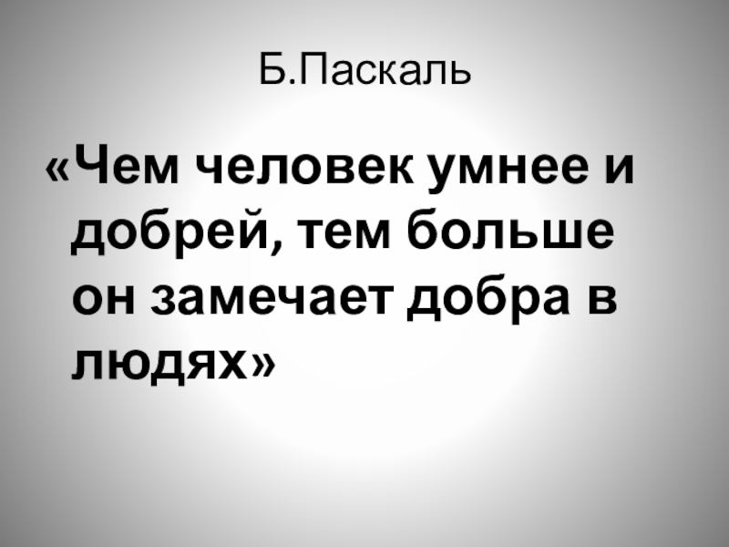 Б.Паскаль«Чем человек умнее и добрей, тем больше он замечает добра в людях»