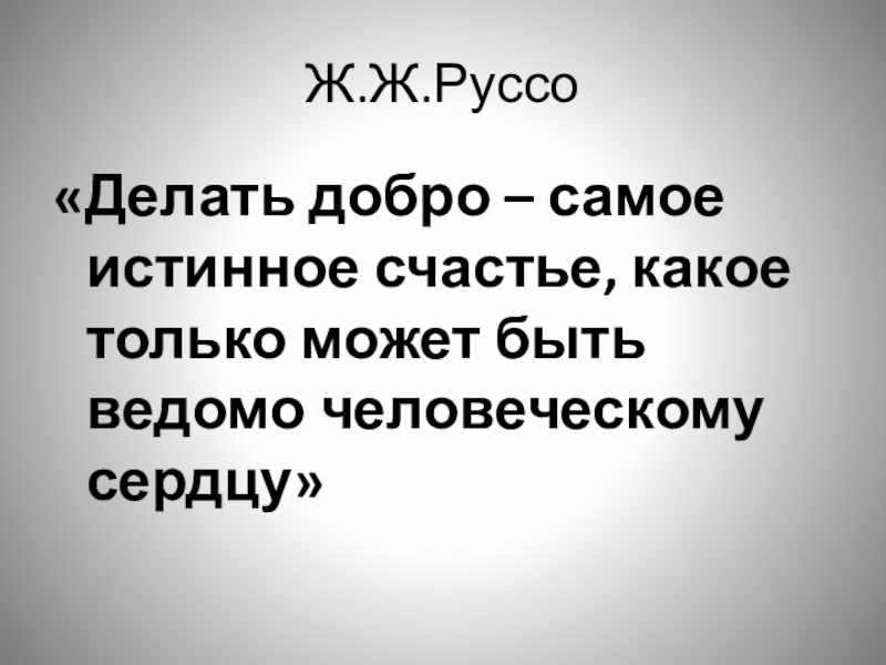 Ж.Ж.Руссо«Делать добро – самое истинное счастье, какое только может быть ведомо человеческому сердцу»