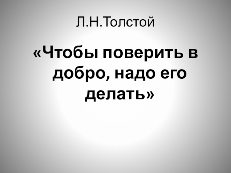 Л.Н.Толстой«Чтобы поверить в добро, надо его делать»