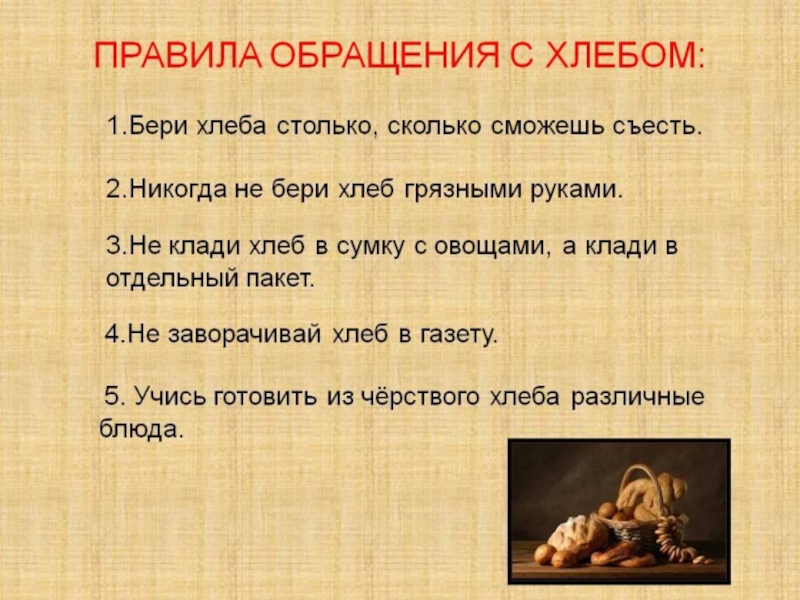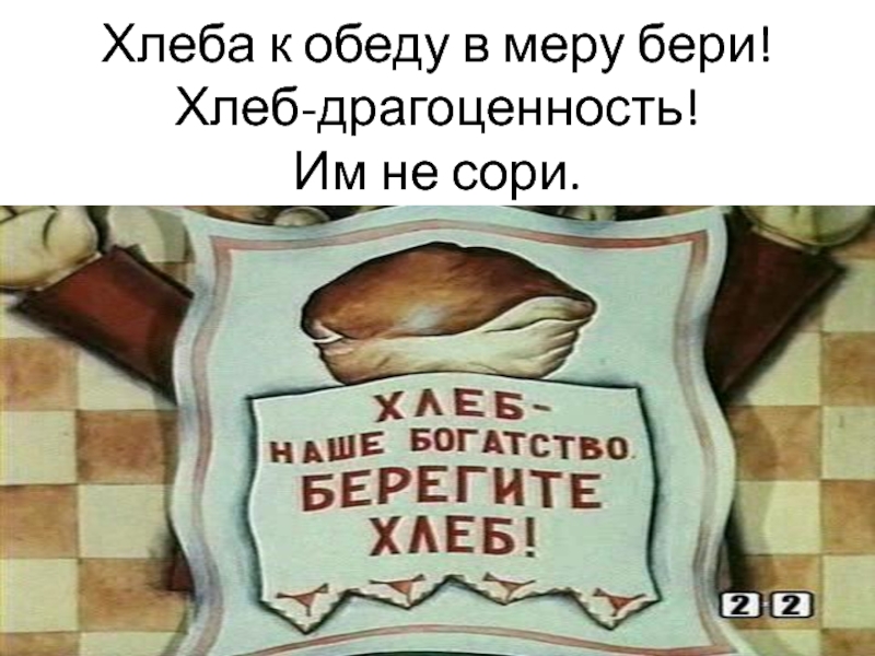 Слайд 43Хлеба к обеду в меру бери! Хлеб-драгоценность! Им не сори.
