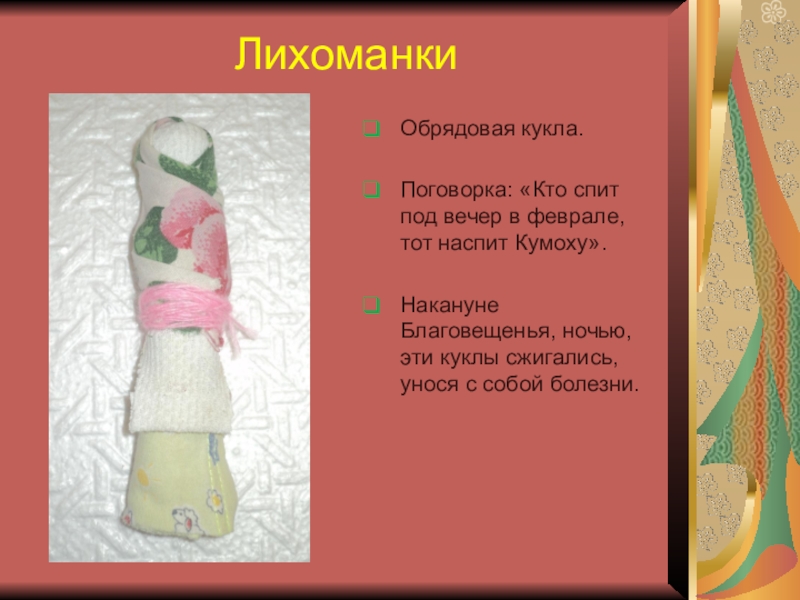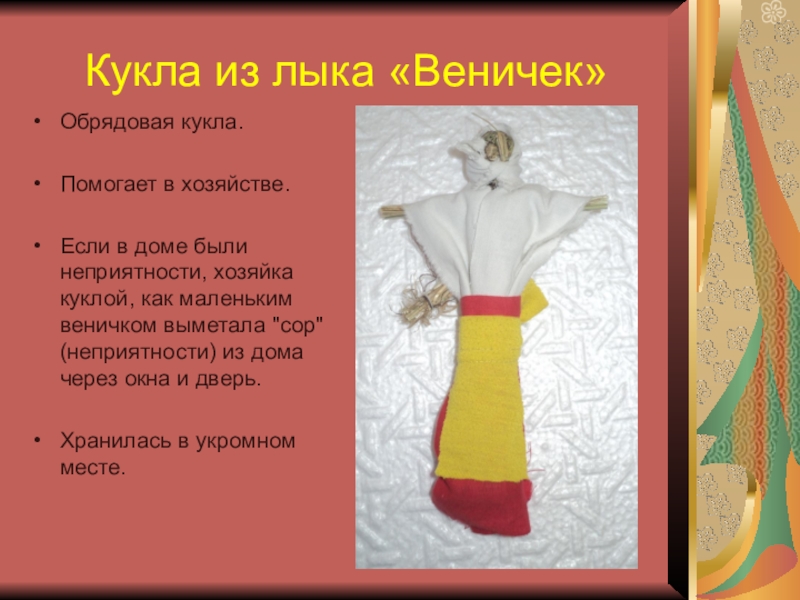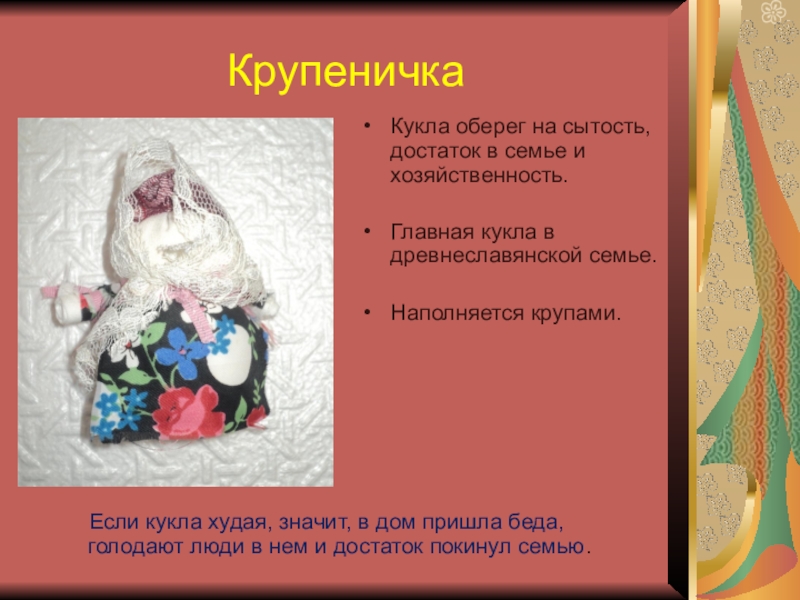 Если кукла худая, значит, в дом пришла беда, голодают люди в нем и достаток покинул семью.