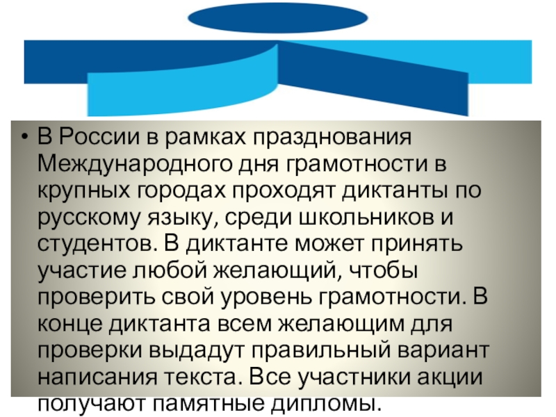 Слайд 9В России в рамках празднования Международного дня грамотности в крупных городах
