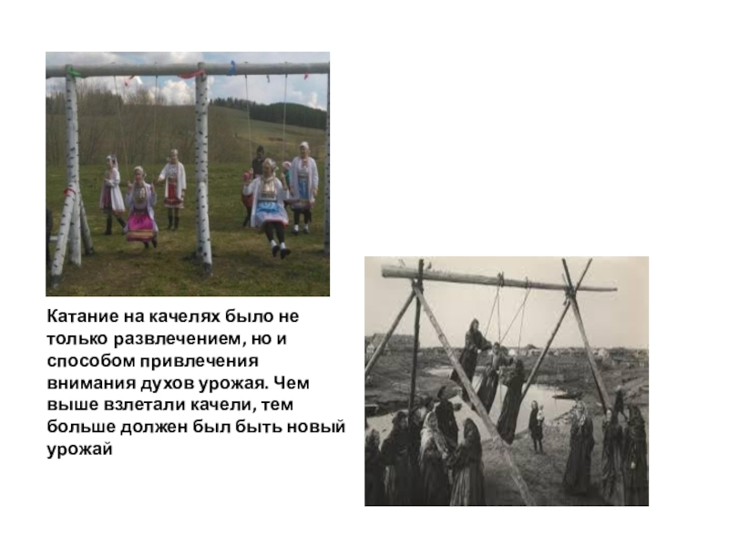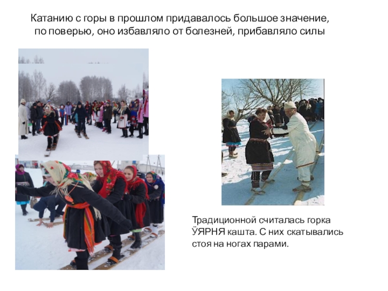 Традиционной считалась горка ӰЯРНЯ кашта. С них скатывались стоя на ногах парами.
