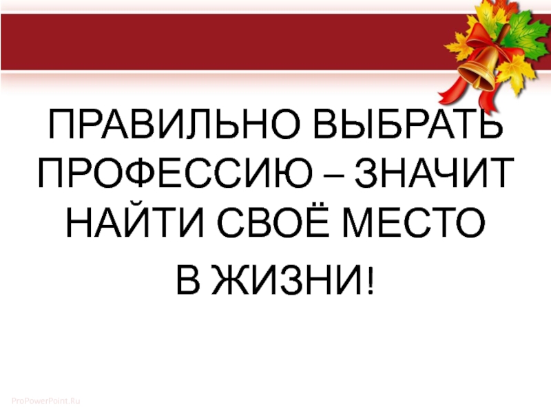 ПРАВИЛЬНО ВЫБРАТЬ ПРОФЕССИЮ – ЗНАЧИТ НАЙТИ СВОЁ МЕСТО