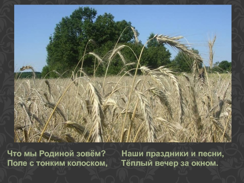 Что мы Родиной зовём?    Наши праздники и песни,Поле с тонким колоском,   Тёплый