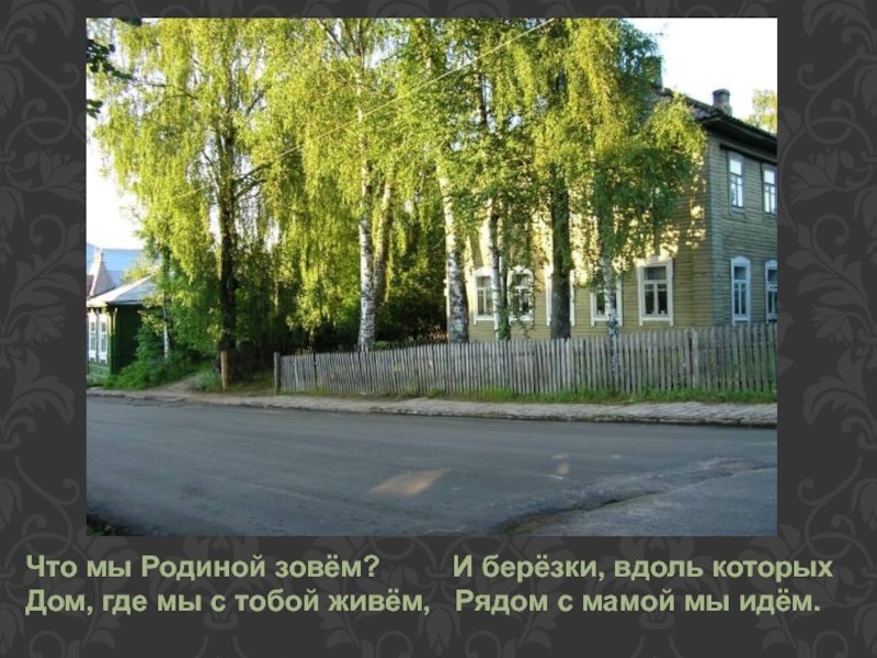 Что мы Родиной зовём? И берёзки, вдоль которыхДом, где мы с тобой живём, Рядом с мамой мы идём.
