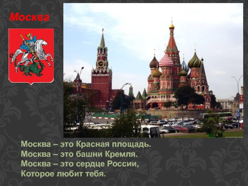 МоскваМосква – это Красная площадь.Москва – это башни Кремля.Москва – это сердце России,Которое любит тебя.