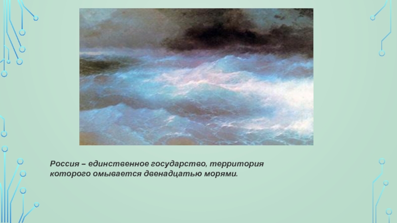 Слайд 11Россия – единственное государство, территория которого омывается двенадцатью морями.