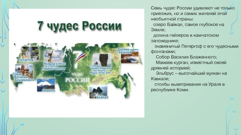 Слайд 20Семь чудес России удивляют не только приезжих, но и самих жителей