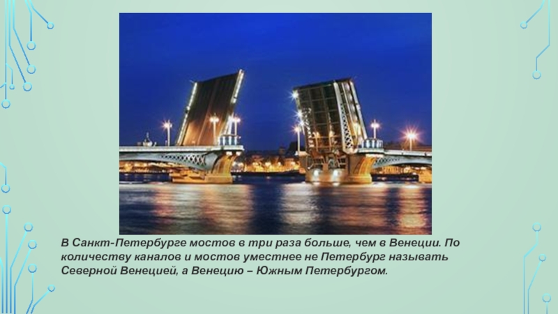 Слайд 8В Санкт-Петербурге мостов в три раза больше, чем в Венеции. По