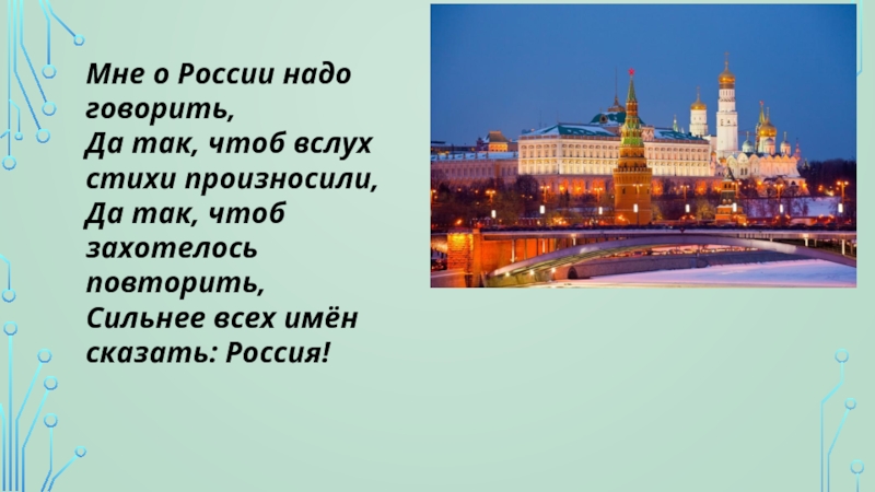 Слайд 3Мне о России надо говорить,