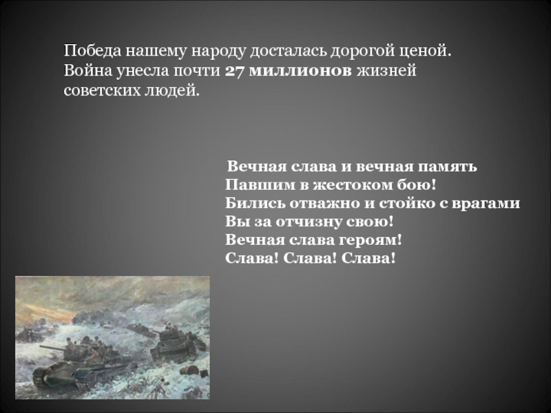 Победа нашему народу досталась дорогой ценой.