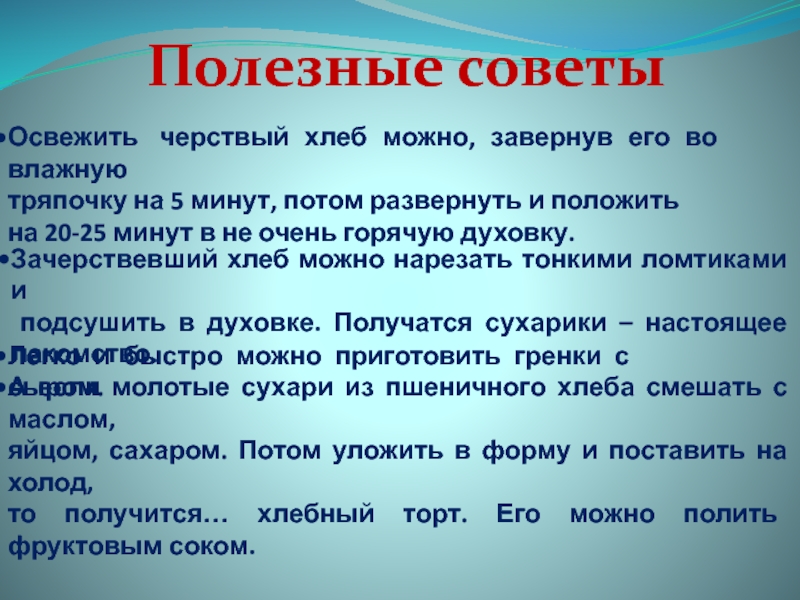 подсушить в духовке. Получатся сухарики – настоящее лакомство.