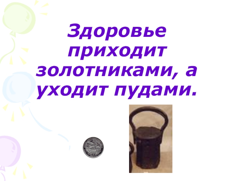 Слайд 2Здоровье приходит золотниками, а уходит пудами.