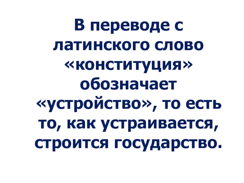 Слайд 5 В переводе с латинского слово «конституция» обозначает «устройство», то есть то,